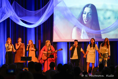 Pour le grand final, les musiciennes primées israéliennes et palestiniennes Yael Deckelbaum et Meera Eilabouni, accompagnées de Leonore Lorek, Katja Muckenschnabl et Teresa Pfefferkorn, feront vibrer la salle d’émotion et de joie. La chanson de Yael Deckelbaum « Prayer of the Mothers » a déjà touché plus de 13 millions de personnes sur YouTube – et renaîtra ici, en live, à Homburg.